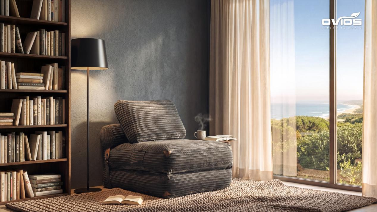 The OVIOS MOLLY Bean Bag Folding Sofa Bed is designed to serve as a reading chair, floor lounger, and fully extended single sleeper. Constructed with high-density memory foam for targeted pressure relief, MOLLY is wrapped in a breathable, durable textile intended for long-term use.